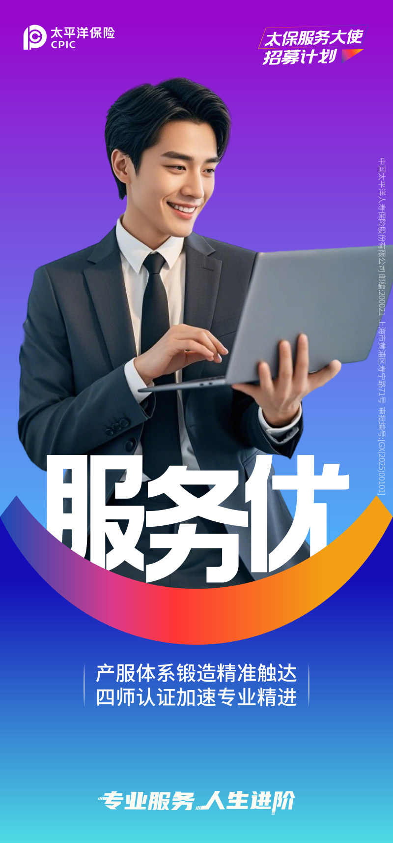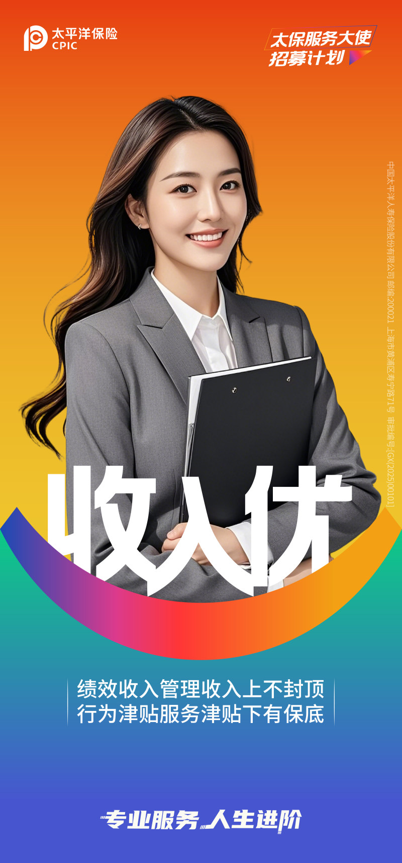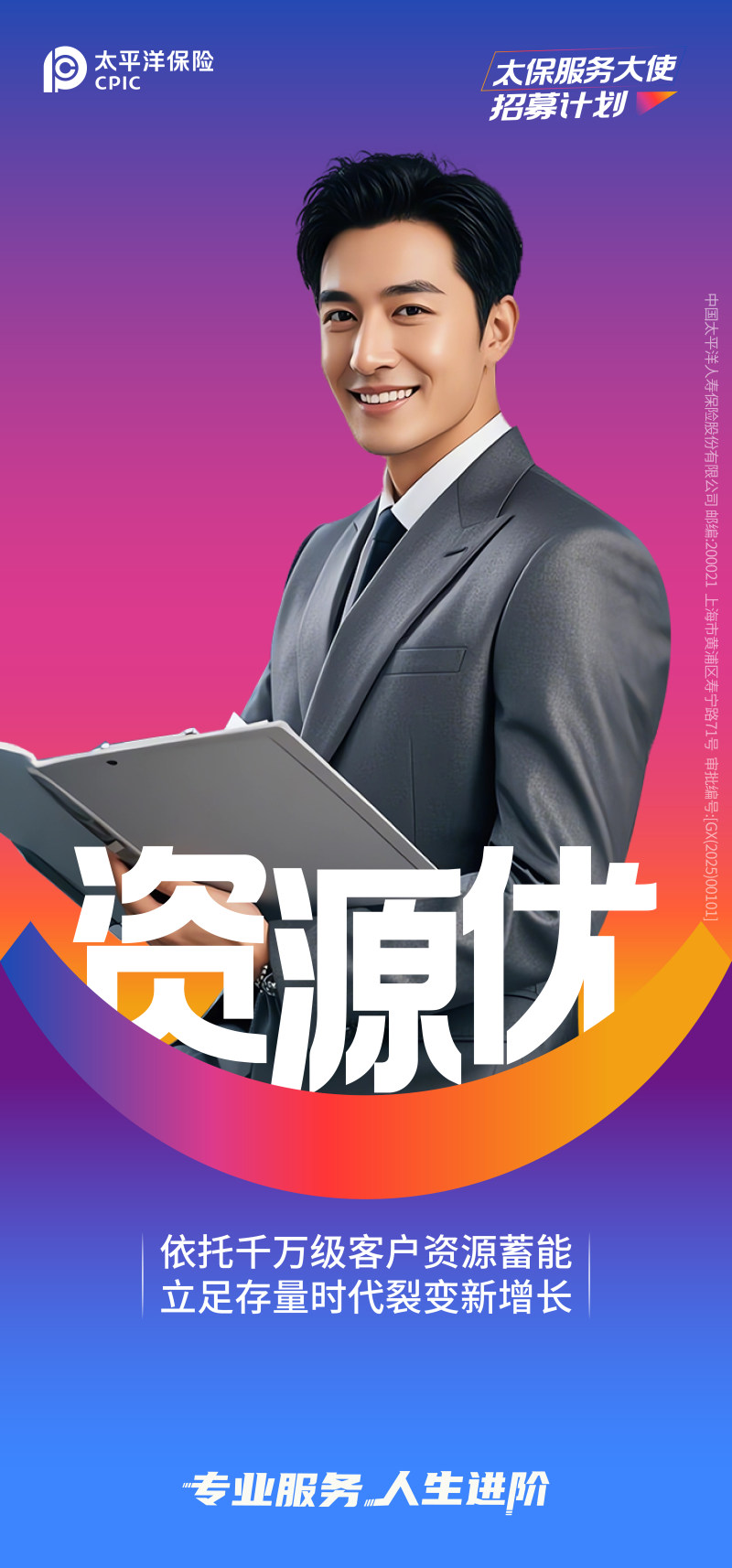 中國太平洋人壽保險股份有限公司(以下簡稱“太平洋壽險”)成立于2001年11月,是中國太平洋保險(集團)股份有限公司(以下簡稱“太平洋保險”)旗下專業(yè)壽險子公司。太平洋保險是在1991年5月13日成立的中國太平洋保險公司基礎(chǔ)上組建而成的保險集團公司,是國內(nèi)領(lǐng)先的綜合性保險集團,并是A+H+G(上海、香港、倫敦)三地上市的保險公司。 近年來,太平洋壽險以“打造服務(wù)體驗最佳的壽險公司,做壽險行業(yè)的長期主義者”為使命愿景,縱深推進“長航行動”深化轉(zhuǎn)型,持續(xù)走深走實高質(zhì)量發(fā)展之路。2024年,公司實現(xiàn)規(guī)模保費2,610.80億元,同比增長3.3%;實現(xiàn)新業(yè)務(wù)價值132.58億,同比增長20.9%;凈利潤358.21億元,同比增長83.4%;綜合償付能力充足率210%,高于監(jiān)管要求。 太平洋壽險建立了覆蓋全國的銷售網(wǎng)絡(luò)和多元化服務(wù)平臺。公司堅持 以客戶需求為中心,圍繞“健康保障、養(yǎng)老教育、財富傳承”的產(chǎn)品服務(wù)體系,提升產(chǎn)品創(chuàng)新能力,深挖客戶需求,實現(xiàn)客戶分層分類分群供給,為客戶提供覆蓋全生命周期的“產(chǎn)品+服務(wù)”綜合解決方案。
