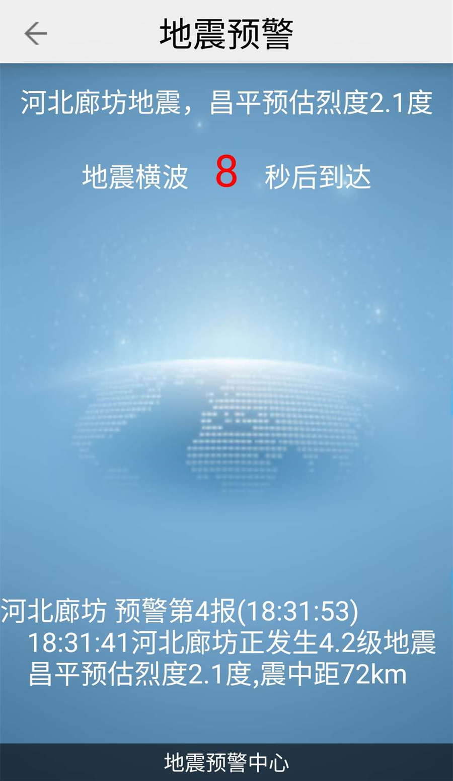手機地震預警軟件北京用戶收到地震預警警報