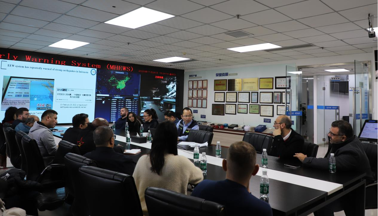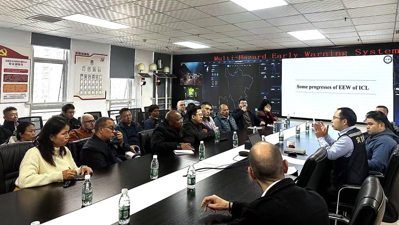 11 月 25 日,在中共中央對外聯(lián)絡部、中共四川省委外事工作委員會辦公室的帶領下,由涵蓋亞洲、歐洲、非洲、美洲4大洲26個國家組成的世界政黨智庫學者考察團到訪成都高新減災研究所(以下簡稱 “減災所”)深入交流地震預警和多災種預警。